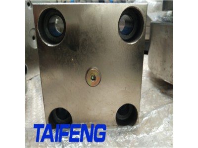 控制盖板用来将插装阀固定在阀块块体内,并可在盖板内设置先导控制通道。它和安装在控制盖板上的先导阀或插装于盖板内的先导控制元件、节流螺塞等组成先导液阻网络,对座阀级进行设定的控制,并用于调整和影响阀芯开关时间。控制盖板的控制通道还和阀块块体内的主通道和控制通道连接。根据需要,控制盖板还经常设置行程调节和检测机构。